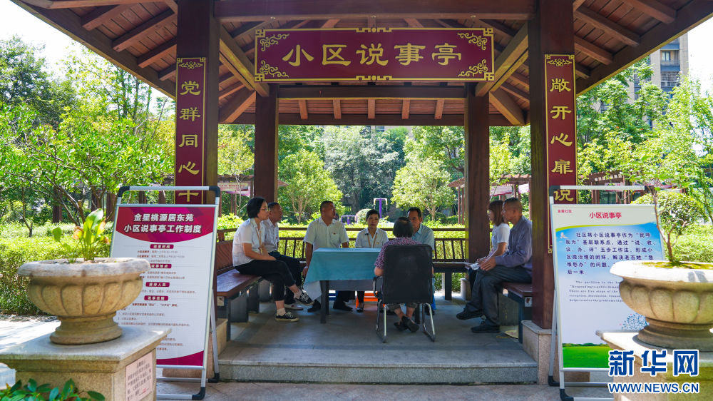 2022年7月29日,小区环境提升改造的主题议事活动在拱墅区半山街道金星社区桃源居东苑“小区说事亭”举行。杭州市拱墅区供图