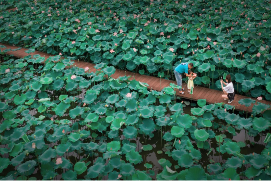 每年盛夏,圩头通和莲子基地的荷花盛然开放,与荷花池边上的红豆杉相得益彰,是游客们必打卡的夏日圣地。