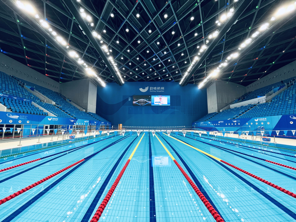 “每一滴水,都要‘过七关’,才能‘游’进亚运会的赛场。”杭州奥体中心游泳馆新闻宣传主任许灵翀介绍,通过一整套完善高效的高科技水循环系统的支撑,本届亚运会的游泳跳水馆在实现常年“不换水”的同时,水质完全符合国际赛事标准。