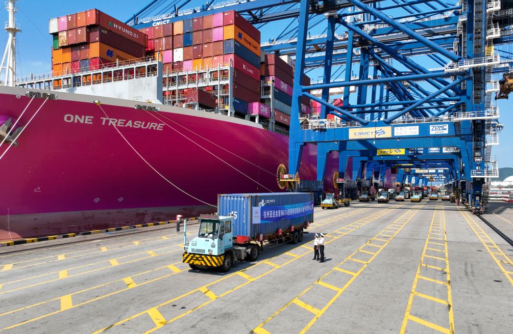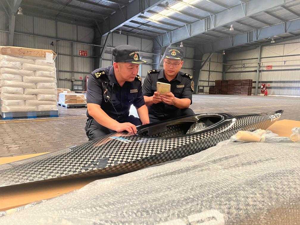 宁波海关所属大榭海关关员对首票ATA单证进境亚运物资开展监装监卸。新华社发 向恋梅 摄
