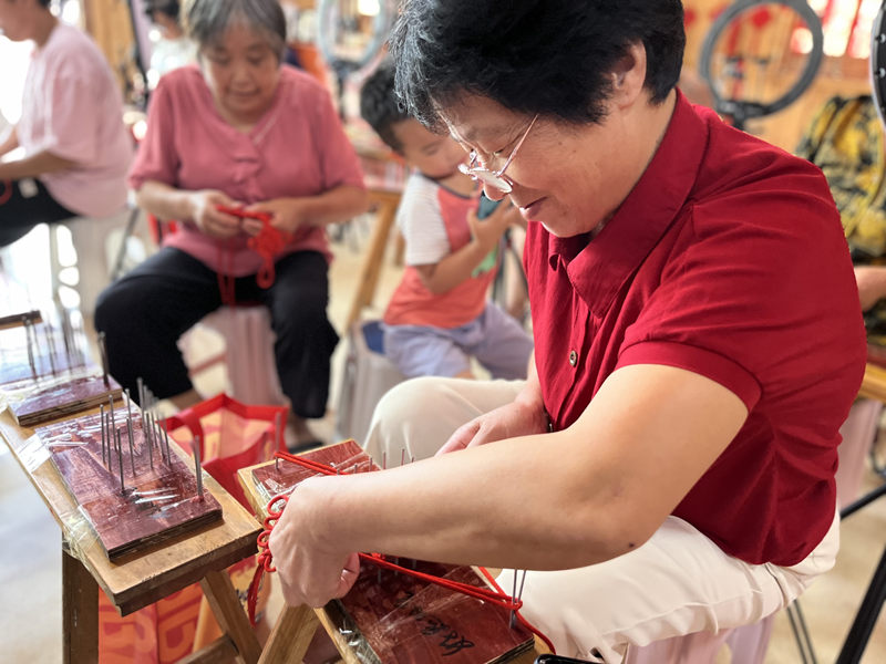 近日,在浙江省金华市磐安县双溪乡史姆村文化礼堂内启动了第二期中国结+电商直播培训,8名中国结“土教授”手把手为32名学员授课。自第一期中国结+电商直播培训以来,该县通过一个礼堂带一批学员,实现全县236个行政村“土教授”全员扎根、文化礼堂全域覆盖,培训中国结新匠人3000人、网红主播260名,辐射带动农特产品、手工制品月销售额达3万余元。