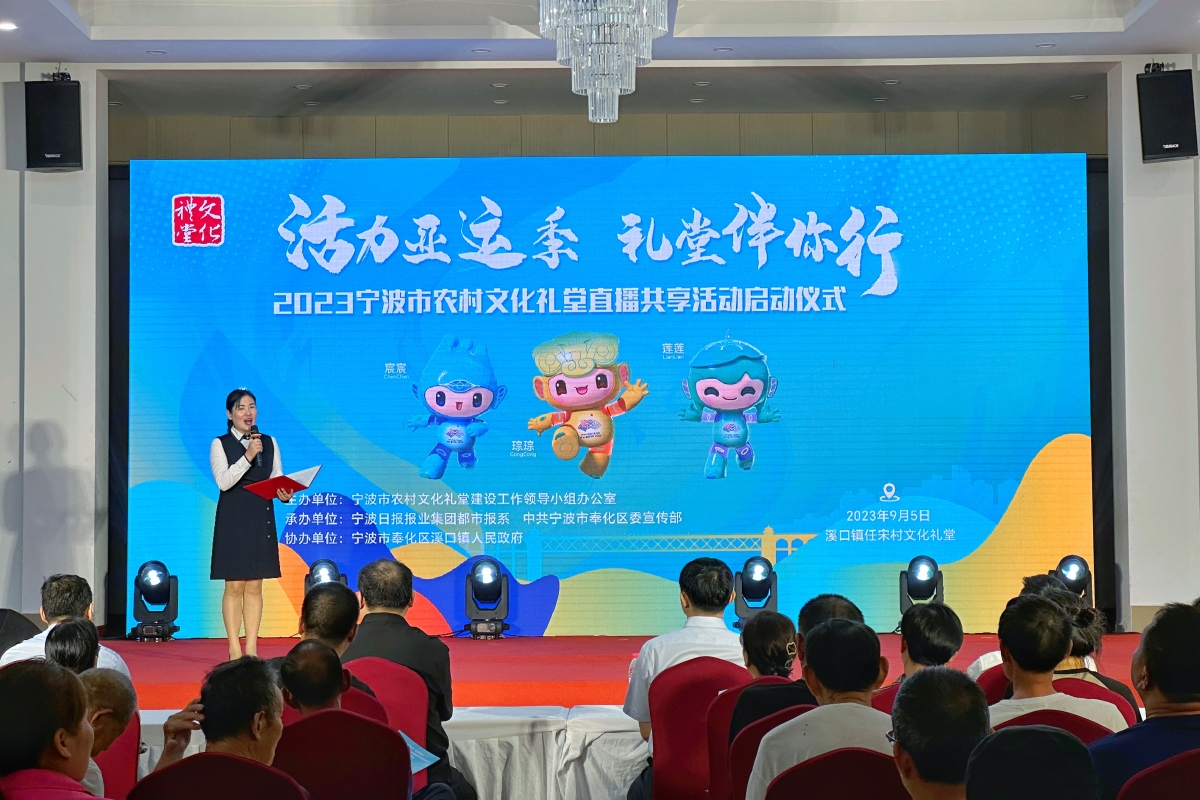 为深入实施“精神家园”夯基提效工程,积极发挥农村文化礼堂赋能共同富裕重要作用,持续实施农村文化礼堂赋能共同富裕引领计划,9月5日,由宁波市农村文化礼堂建设工作领导小组办公室主办,宁波日报报业集团都市报系、中共宁波市奉化区委宣传部承办,奉化区溪口镇人民政府协办的“活力亚运季·礼堂伴你行”2023宁波市农村文化礼堂直播共享活动启动仪式在奉化区溪口镇任宋村文化礼堂举行。