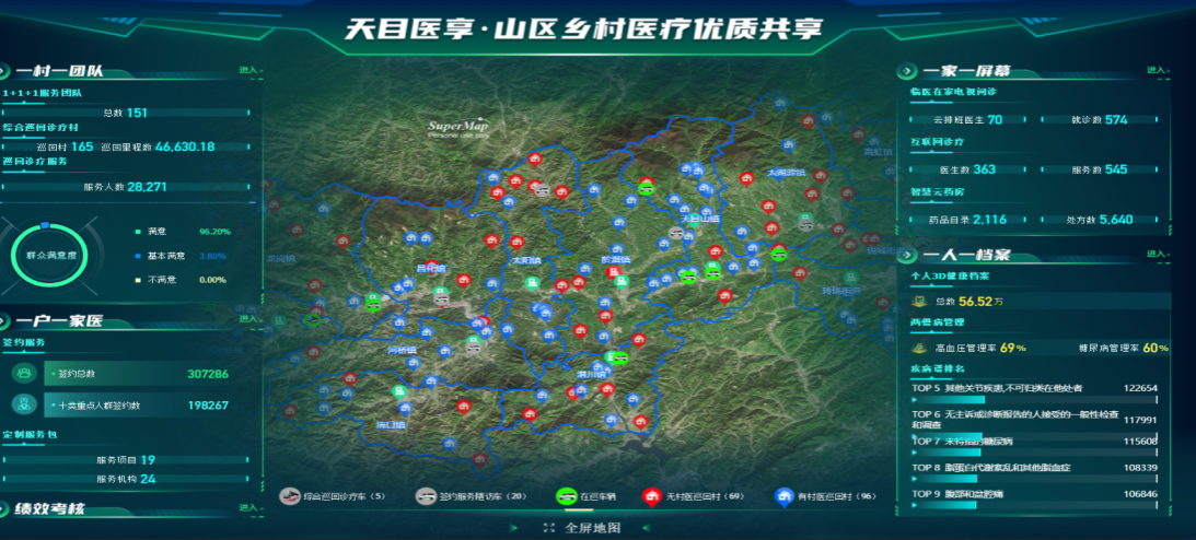 “天目医享•乡村医疗优质共享”驾驶舱。