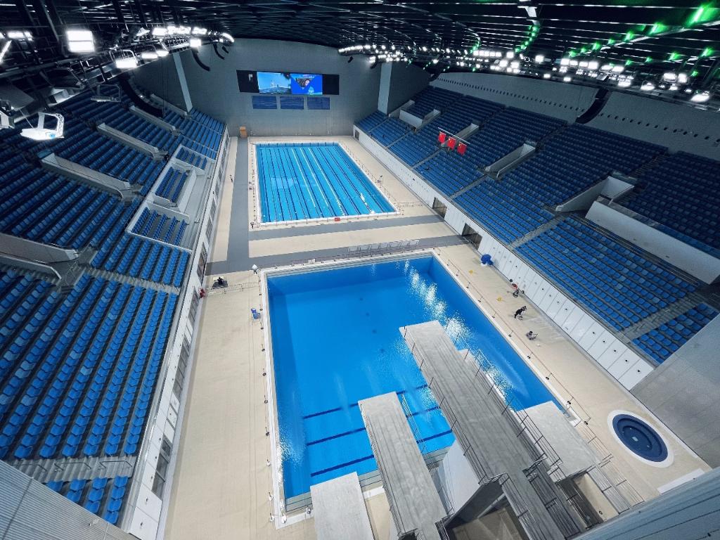 来到杭州奥体中心游泳馆的比赛区,目之所及一片湛蓝,俯身下望清澈见底。“目前比赛池已经蓄满,循环检测系统也在持续工作。赛时,我们每天都会对水质进行检测,确保满足国际赛事标准。”杭州奥体中心游泳馆新闻宣传主任许灵翀介绍,按照最新版赛事运行计划,场馆正在抓紧开展比赛流线、背景墙、标识标牌的布置和更新工作。
