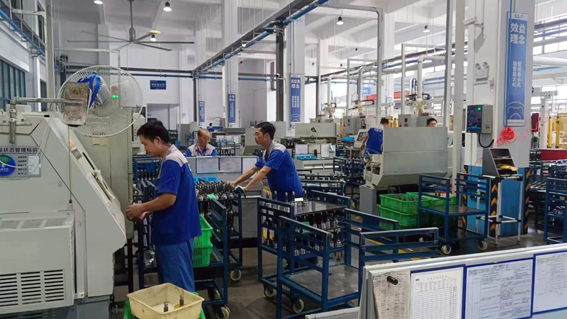 凯迪仕锁业有限公司车间内,工人们正在有序工作,致力保质保量完成订单。