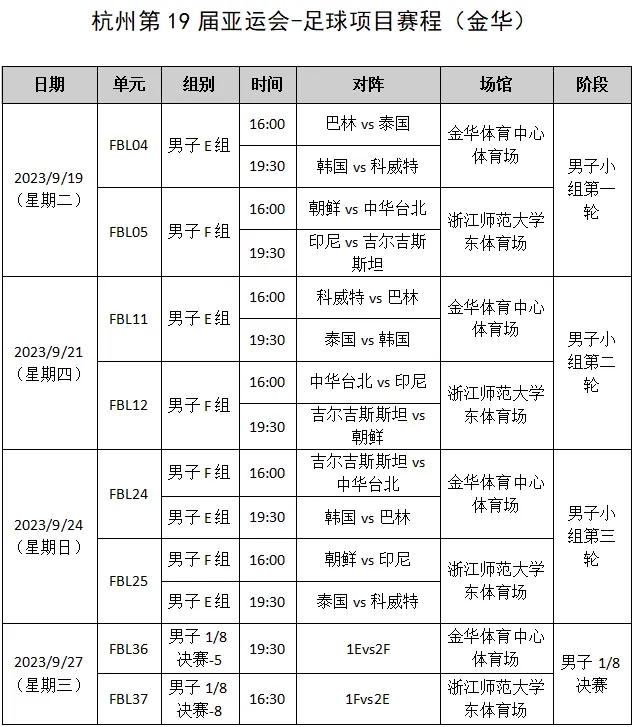 男子足球赛程表
