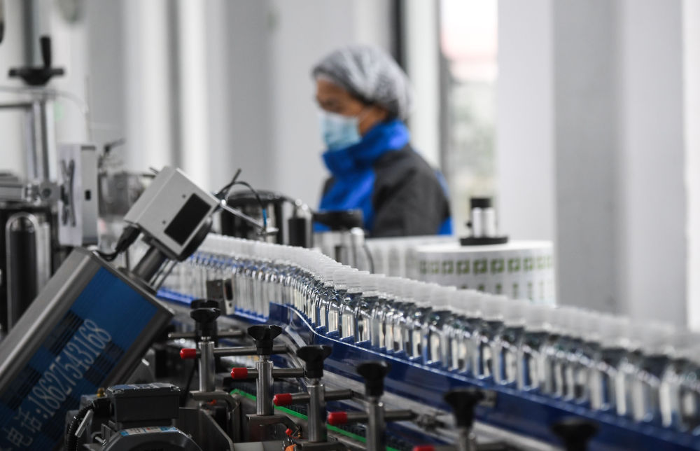 在浙江淳安经济开发区一家水饮料企业拍摄的瓶装水生产线(2020年12月8日摄)。新华社记者 徐昱 摄