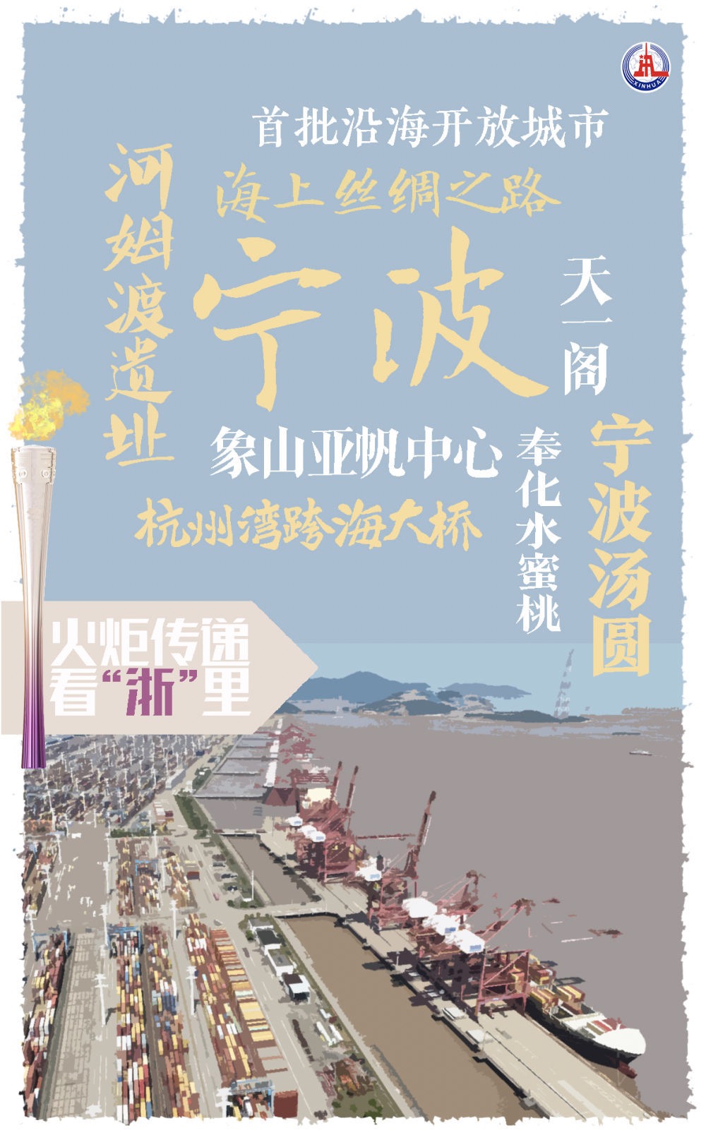 当天,亚运火炬传递宁波站以“滨海宁波 扬帆世界”为主题,传递路线总长12.7公里,以中国港口博物馆为起点,途经梅山湾沙滩公园、吉利汽车梅山制造基地、梅山综合保税区等点位,最终到达宁波舟山港梅山港区集装箱码头收火,形成“扬帆”与“远航”的首尾呼应。【详情】