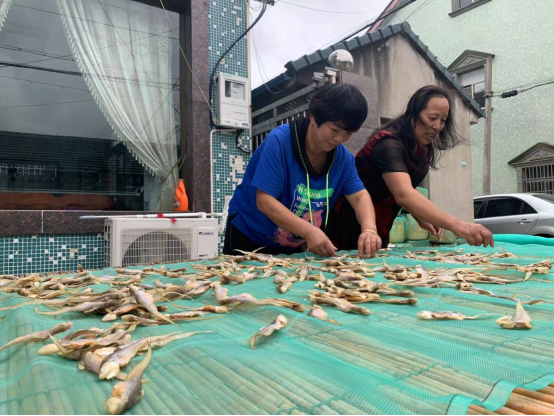 共富工坊还组织村民对小海鲜进行加工,增收的同时拉长了产业链。27岁的“渔二代”姚伟伟是受益者之一。在自家院子里,姚伟伟一边收拾晒好的鱼干、虾干,一边以鲚鱼干为例算起了帐:“新鲜鲚鱼收购价每公斤80元,经过腌制晾晒,3公斤制成1公斤鱼干,每公斤能卖到400多元,大大提升了产品附加值。”据悉,姚伟伟加工的鱼干、虾干主要供应给大酒店,每年能增收20多万元。