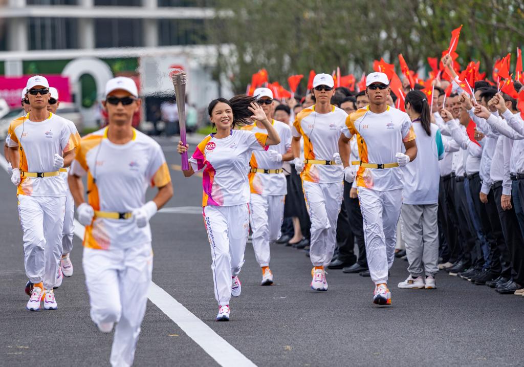 9月14日,火炬手魏梦喜在火炬传递中。新华社记者 孙非 摄