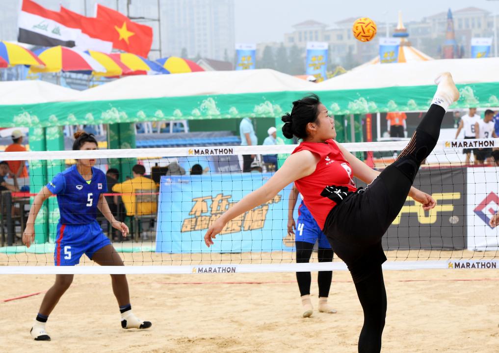 2019年亚洲沙滩藤球锦标赛女子三对三半决赛。新华社记者 李紫恒 摄(资料图)