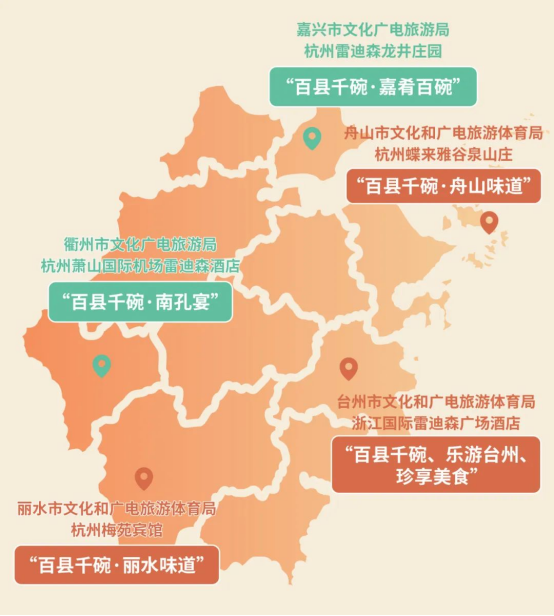 会上,浙江旅游投资集团旗下雷迪森酒店集团和各设区市文化和广电旅游体育局推出“味美浙江·百县千碗”进饭店亚运美食消费季活动,并联动旗下饭店推出8.8折优惠活动。此外,嘉兴市、杭州市上城区还先后上台推介美食,发布亚运期间品尝当地美食的优惠红利。亚运接待酒店代表浙江宾馆,分享如何落实推进“味美浙江·百县千碗”进饭店。