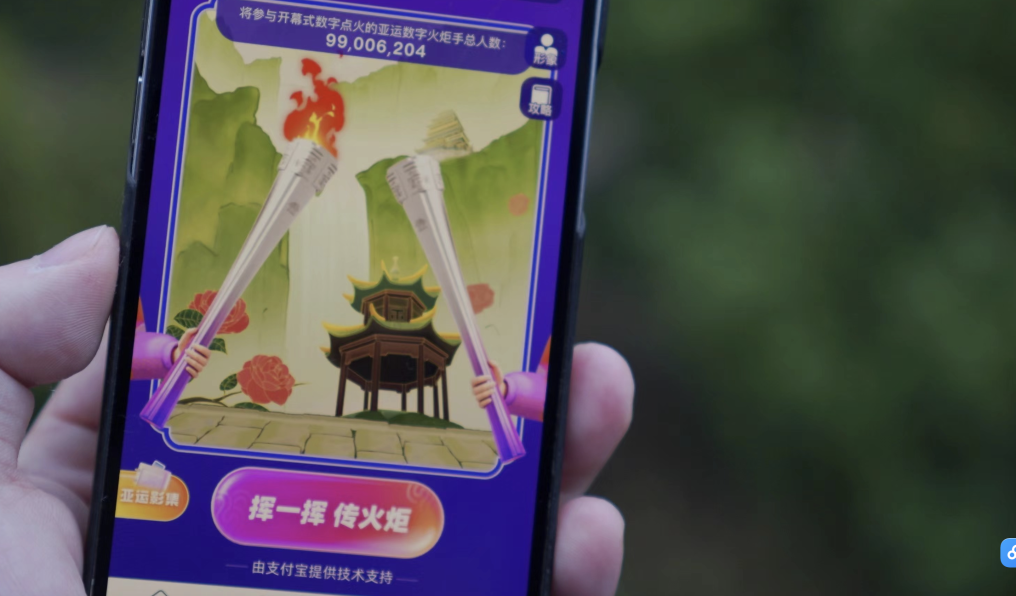 在线下,杭州亚运会火炬传递仍在进行中,9月20日将回到杭州完成最后一站传递。在线上,打开手机,智能终端用户通过“智能亚运一站通”支付宝小程序进入“薪火相传”,点击“挥一挥,传火炬”,就可以成为杭州亚运会“数字火炬手”。
