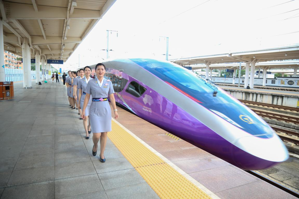 9月16日,首列复兴号亚运智能动车组列车(以下简称亚运列车)驶进金华站,由志愿者组成的铁路金华车务段“i浙里”亚运客运服务专班正式拉开服务序幕。