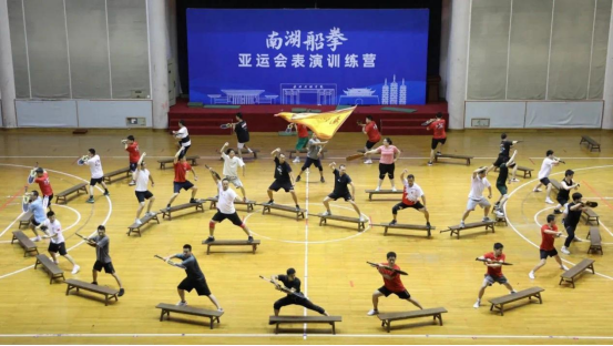 据介绍,自今年7月接到入选通知以来,40多位来自海华武馆和南湖学院的选手们一天不落地参加排练。大到队形变化、时间增减、背景乐更换,小到服装、妆容调整,力求以最精湛的舞台表演礼献亚运。“场地规模很大,我们一开始在体育馆练习,后阶段扩大到在操场练习,每天差不多要训练七八个小时。”韩佳蓓说,为了配合亚运开幕表演场地的特殊性和现场8万观众的观赏性,《南湖船拳》在表演中先后3次改变队形,为线上线下的观众们带来全方位的视觉盛宴。