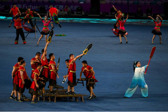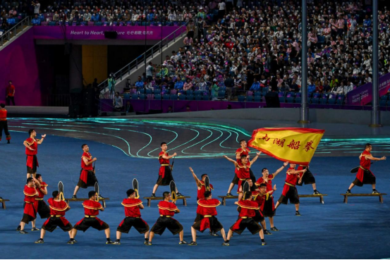 9月23日晚,浙江省嘉兴市非遗武术类节目《南湖船拳》亮相杭州第19届亚运会开幕式暖场表演,向世界展示了独具特色的拳种,感受中国传统武术的魅力。