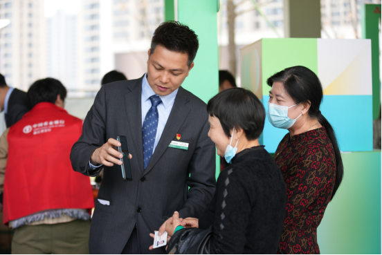 农行杭州富阳支行客户经理指导村民办理数字人民币钱包。