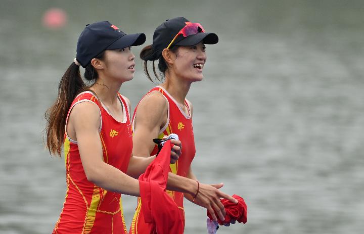 24日上午,在烟波浩渺的富春江上,中国赛艇选手邹佳琪、邱秀萍夺得女子轻量级双人双桨项目的金牌,这也是杭州亚运会的首枚金牌。在获得金牌后,二人在接受新华社记者专访时讲述了冠军诞生背后的故事。