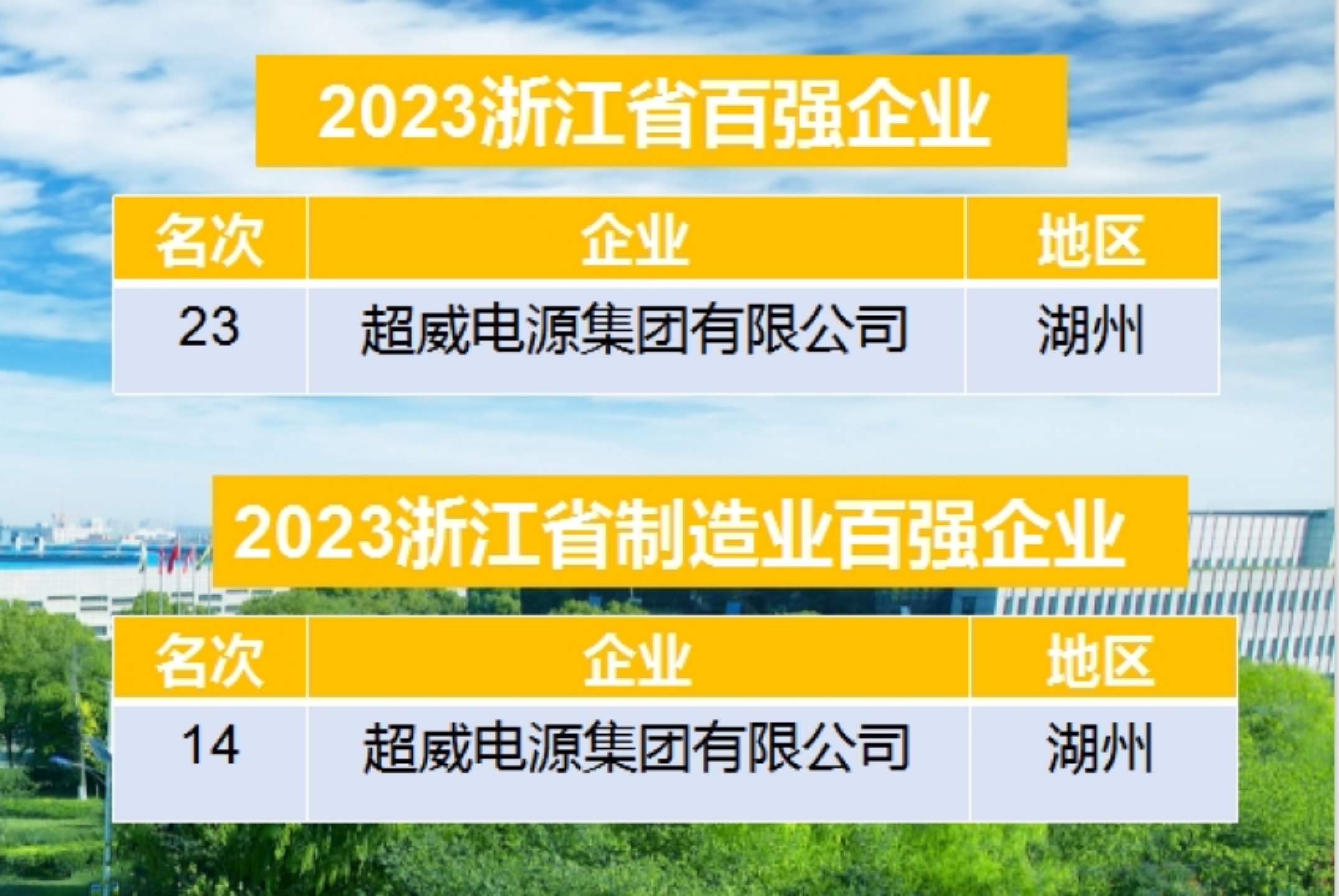 9月27日,浙江省企业联合会、浙江省企业家协会、浙江省工业经济联合会正式发布2023浙江省百强企业榜单,超威集团再次上榜,位列第23位。同时,超威集团上榜2023浙江省制造业百强企业,位列第14位。
