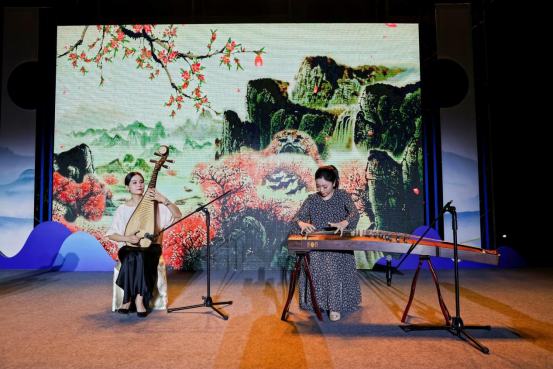 活动在歌曲《明月升》中拉开帷幕。随后,情景诗《寻梦山水间》、越剧《月光如水琴悠悠》、古筝琵琶二重奏《月儿高》、舞蹈《清音》、歌曲《@未来》等节目,为到场的代表们呈现了一场温情的如山水画卷般的表演。