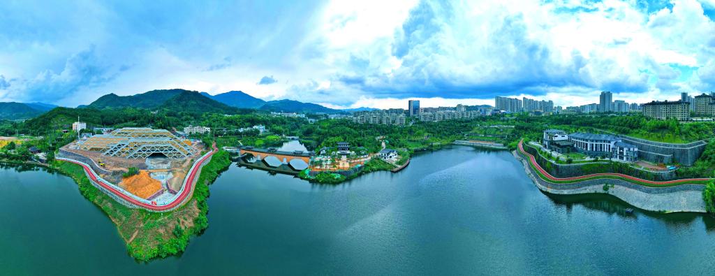 如今,曾经的荒地摇身一变成了“一湖山色、九境归园”的文祥湖公园。公园内的音乐喷泉、健身步道以及古建群体和特色景观吸引着周边群众前来打卡;融入了泰顺廊桥和泰顺碇步文化的雕塑,则展现着泰顺当地传统的“廊桥之美”。这是该县针对旅游业微改精提的一项成果。