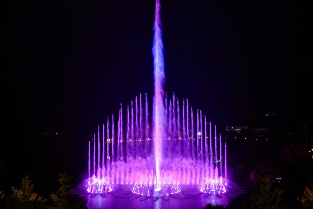 演出中的水秀音乐喷泉。新华网发 泰顺县罗阳镇政府供图
