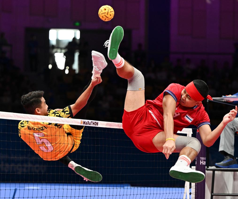 杭州亚运会藤球男子单组团体决赛现场。新华社记者 陈钟昊 摄