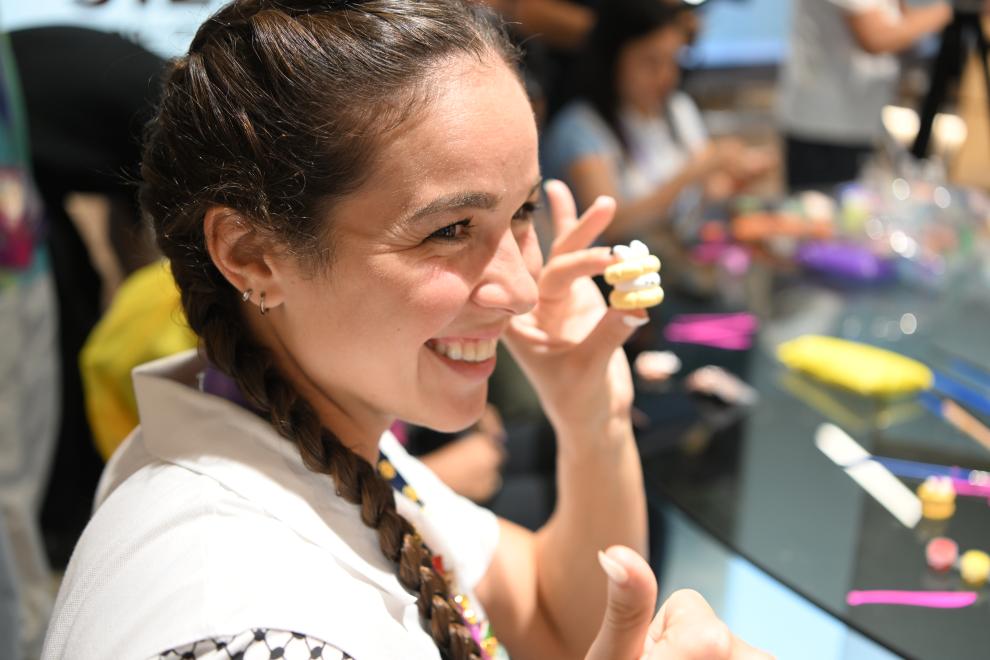9月29日,巴勒斯坦运动员夫莱里·塔拉齐在亚运村展示自己制作的“玉兔”。新华社记者 徐嘉懿 摄