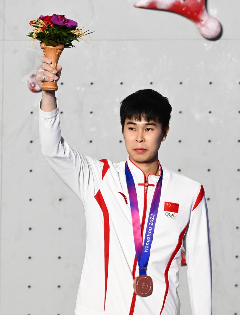 6日,杭州亚运会攀岩男子个人两项全能决赛在绍兴柯桥羊山攀岩中心举行,16岁的日本选手安乐宙斗夺冠。中国选手潘愚非凭借后程逆转夺得中国该项目在国际大赛中的首枚奖牌。