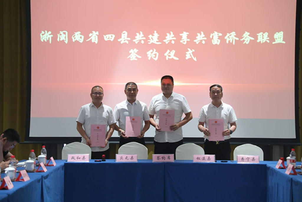 浙江省丽水市庆元县与福建省松溪、政和、寿宁三县毗邻,同属山区县。为进一步增强区域联动,促进侨务资源共建共享,提高侨联服务大局、服务经济社会发展的能力,今年7月,浙闽两省四县侨务工作联席会议在庆元县召开,庆元、松溪、政和、寿宁四县在会上共同签署了《浙闽两省毗邻四县缔结“共建共享共富侨务联盟”协议书》。