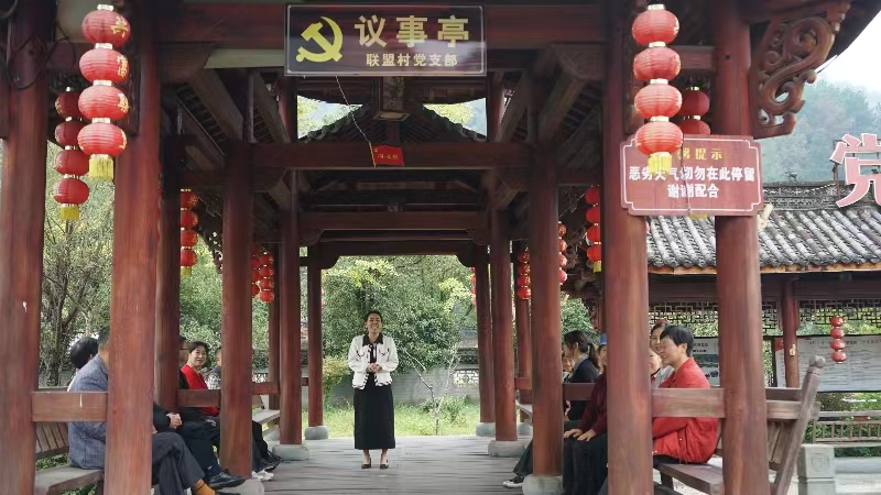 在华埠镇联盟村议事长廊,村党支部书记、村委会主任陆燕正在向村民们公开村里近期的村务、财务、党务“三务”情况。“通过长廊议事,激发了群众的主体意识和主人翁精神,他们主动参与基层自治建设,做到‘矛盾不上交、问题不出村’。”