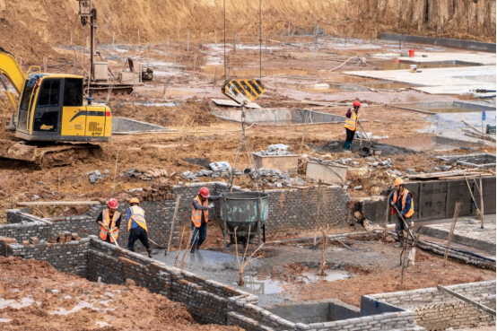 近日,在浙江省衢州市柯城区九华乡的四省边际青少年赛训基地建设现场,近50名工人正在开展底板钢筋捆扎、锚杆桩施工、砖胎膜砌筑等作业。