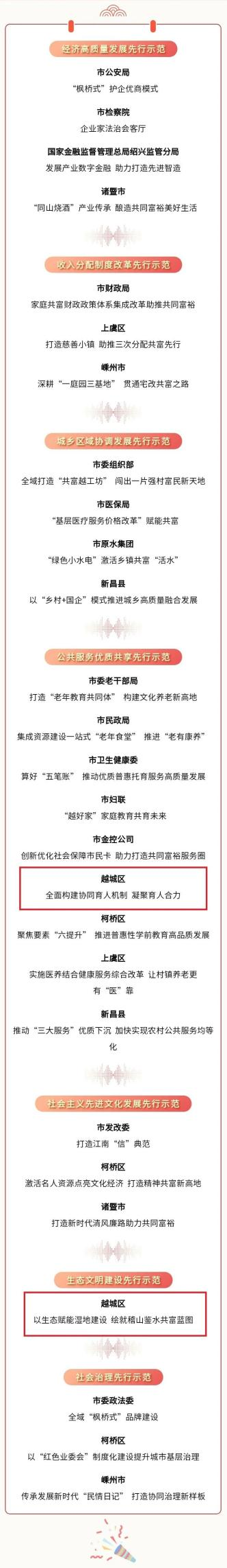 近日,浙江省绍兴市发布高质量发展建设共同富裕示范区最佳实践(第二批)名单,其中绍兴市越城区2个案例入选。