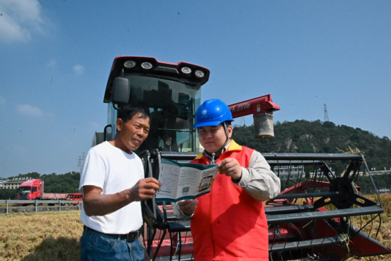 “小孙师傅,又来查勘线路、检查设备啦,这段时间我们秋收,要辛苦你们了。”驾驶着收割机作业的种粮大户柯荣光对正在稻田周边检查线路情况的国网玉环市供电公司沙门供电服务站员工孙尉桐说。