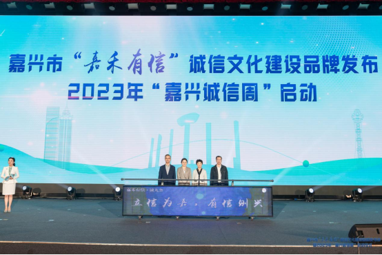 活动现场还发布了“嘉禾有信”LOGO、“诚九条”、2023年“嘉兴诚信周”活动内容,原创歌曲《嘉禾有信》进行了首演。(郑雯/文 嘉兴市委宣传部/供图)