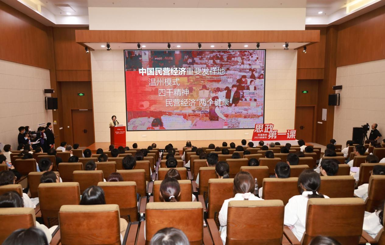 近日,“强国有我 青春正当时”在温高校2023级新生思政课开讲,旨在为来自浙江温州所有高校的5万余名2023级新生扣好“人生第一颗扣子”。