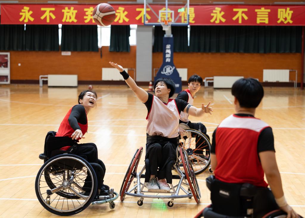 这是2023年8月31日,黄晓连(左二)在中国残疾人体育运动管理中心训练。新华社记者 才扬 摄