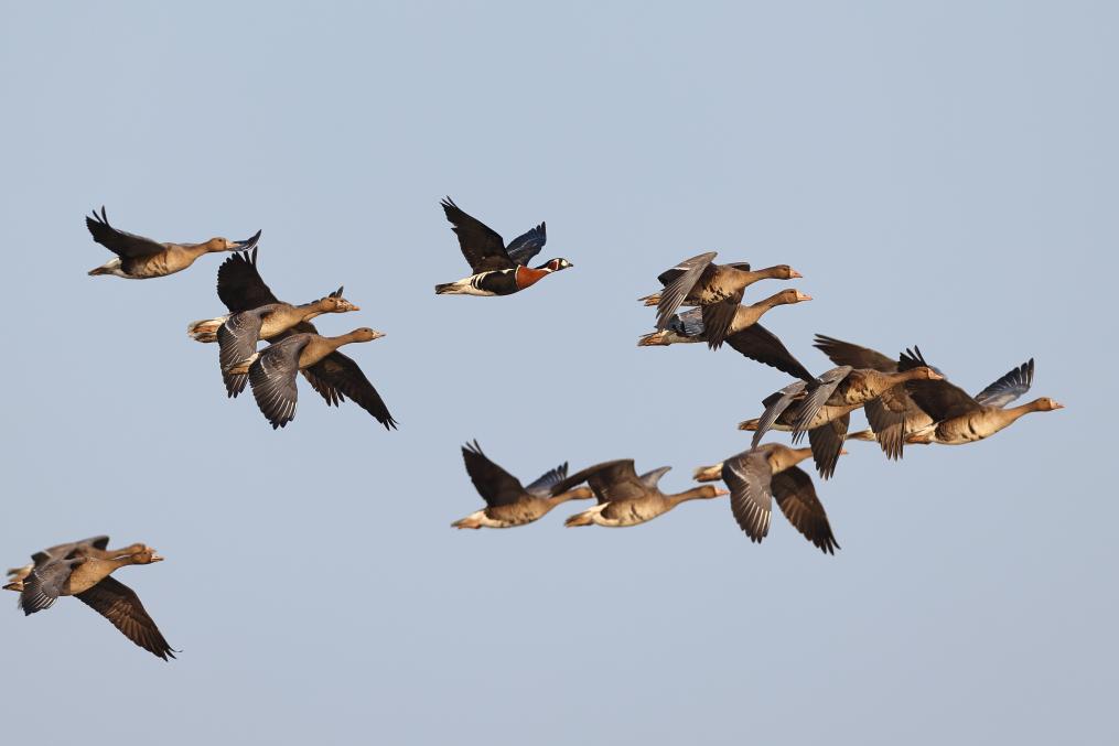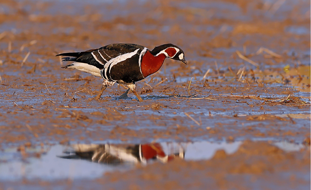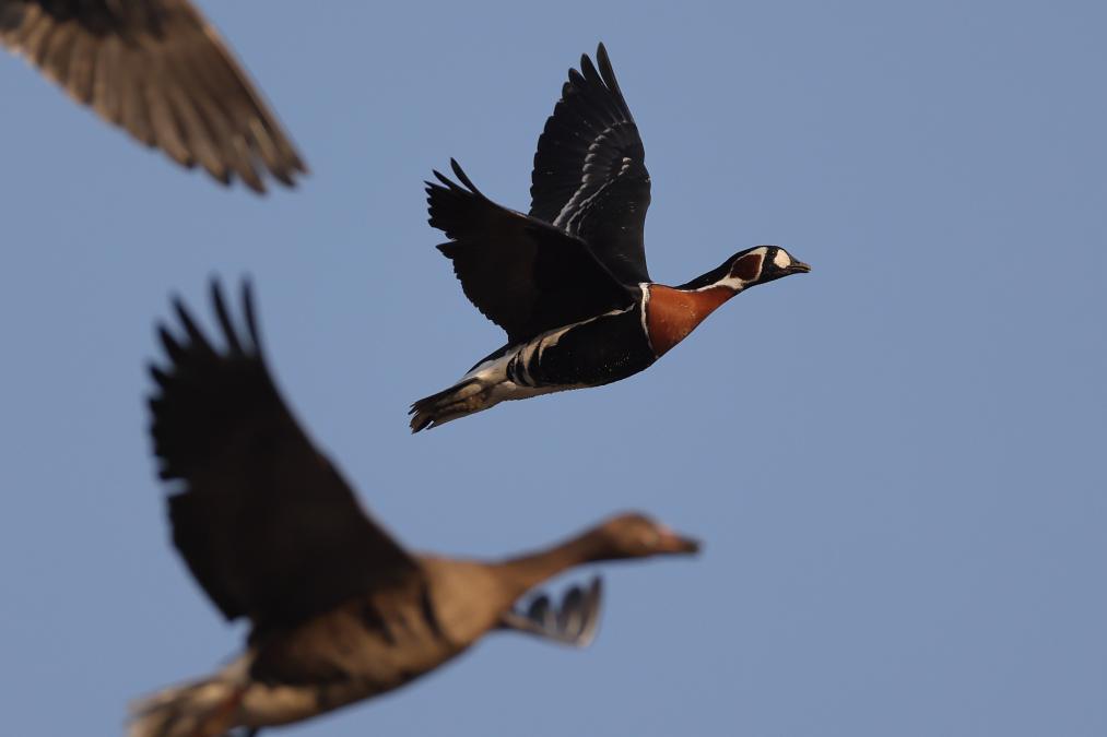 据介绍,红胸黑雁是来自北冰洋一带的冷水雁类,体型比大雁、豆雁等雁类明显要小。但与雁类的羽毛多以灰色为主不同,红胸黑雁的羽毛有栗红色、黑色、白色3种颜色,是雁类中最艳丽的一种,堪称雁类的“颜值担当”。