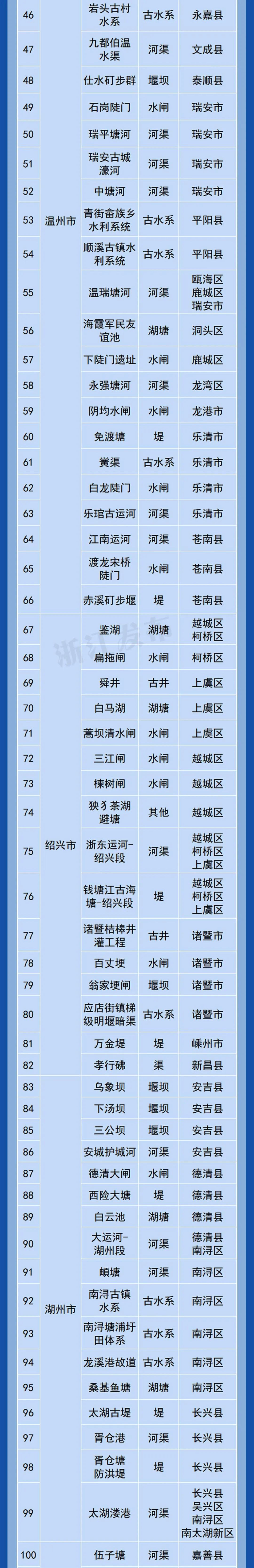 近日,浙江省水利厅公布首批浙江省重要水利工程遗产资源名录,共计205处。钱塘第一井、杭州西湖、象山古井群、桑基鱼塘……