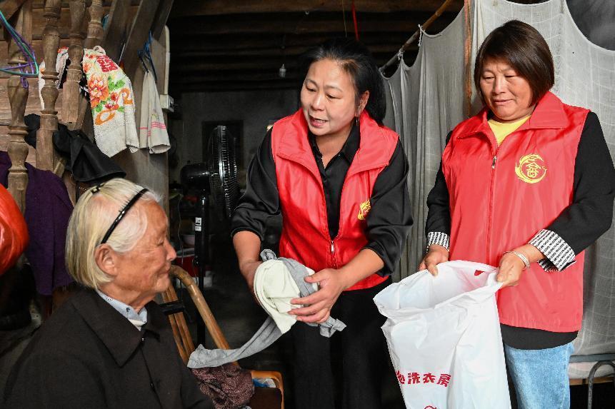 “阿婆,有没有脏衣服要洗?”日前,浙江省文成县巨屿镇稠泛村“洗衣志愿互助队”来到86岁高龄的林阿婆家里。考虑到林阿婆年龄较大、行动不便,且子女长期不在身边,志愿者便经常来到她家提供上门“送洗服务”。