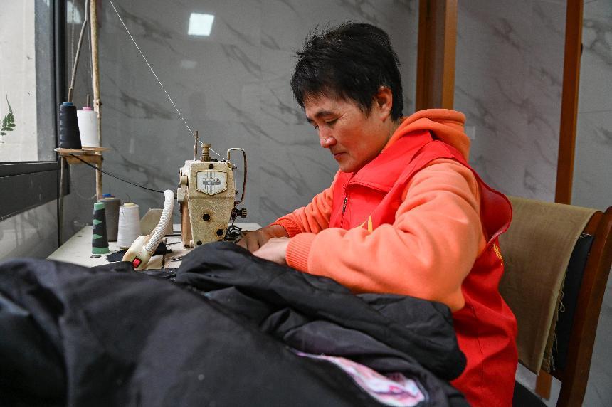 在文成县周山畲族乡益群村的“共享洗衣房”内,洗衣志愿者施秀正在对收来的破损衣物进行缝补。“我以前是做裁缝的,村里有人衣服破了或者需要剪裤脚,经常会来洗衣房缝补,这里免费,也省得他们去县城补。”施秀说。