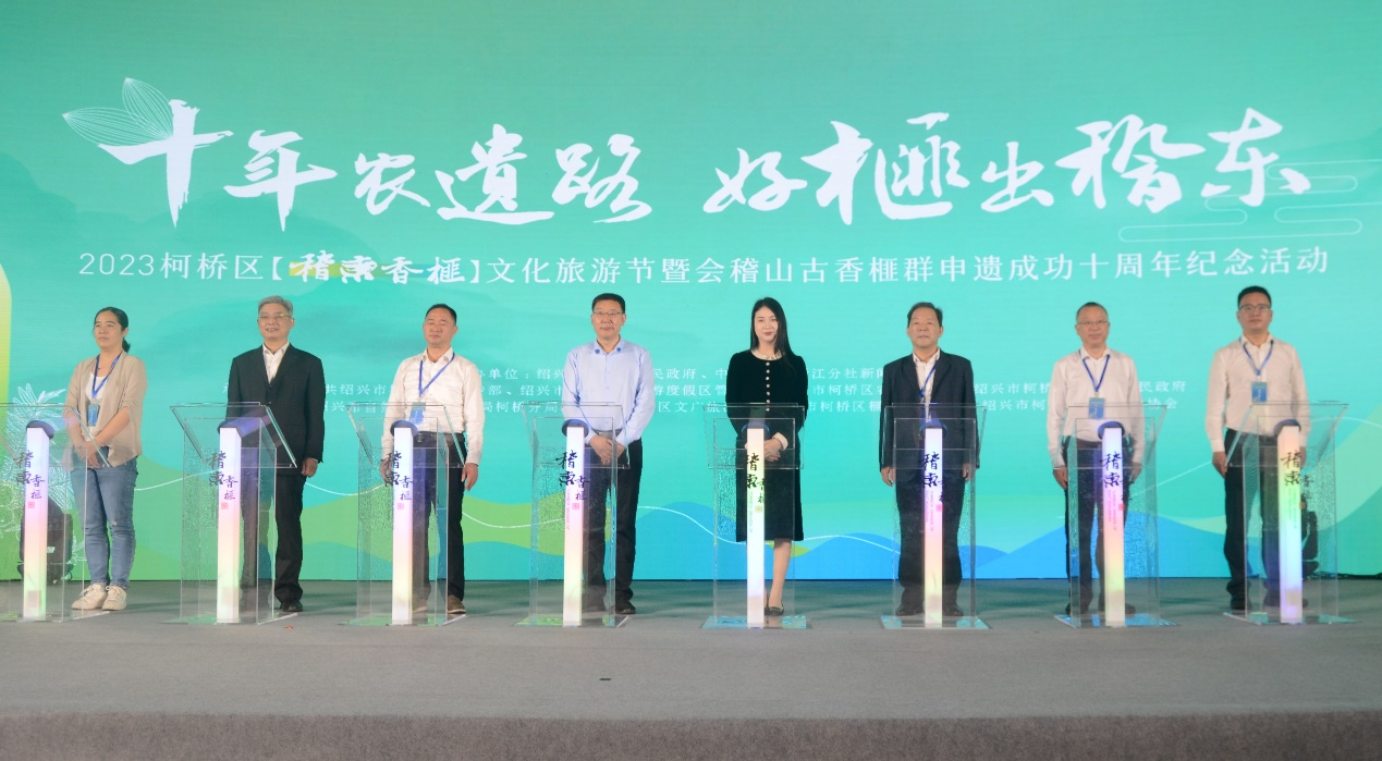 近日,2023柯桥区“稽东香榧”文化旅游节暨会稽山古香榧群申遗成功十周年纪念活动开幕式在浙江省绍兴市柯桥区稽东镇举行。