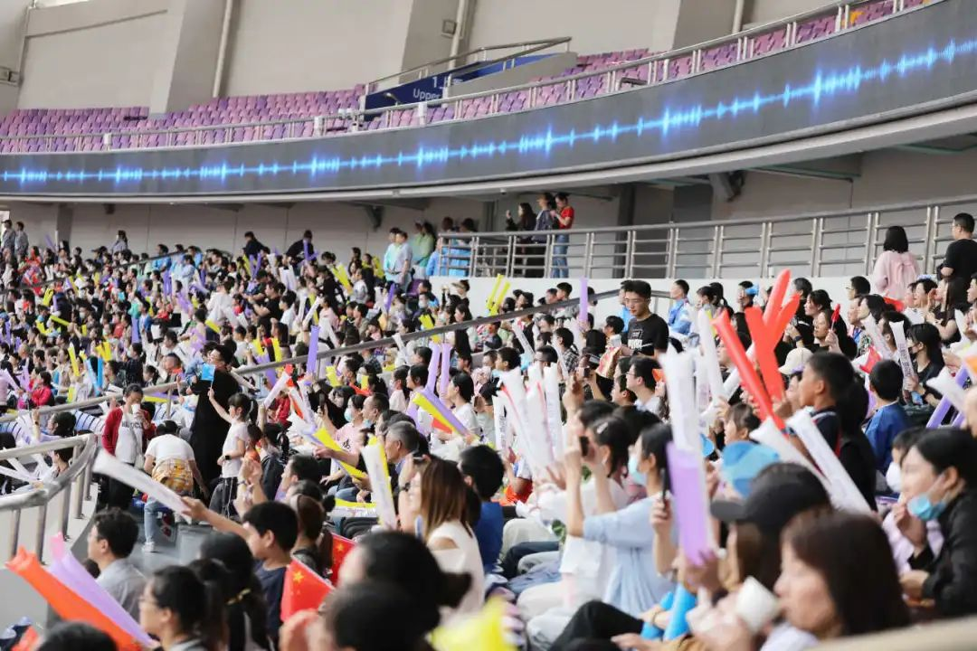 10月28日上午,江寺小学和龙泉市八都镇小结对的40多名孩子、家长和教师代表,在黄龙体育中心体育场为田径比赛的运动员加油助威。城乡孩子牵手走进体育比赛现场,在体育场里,见识最真实的榜样力量。