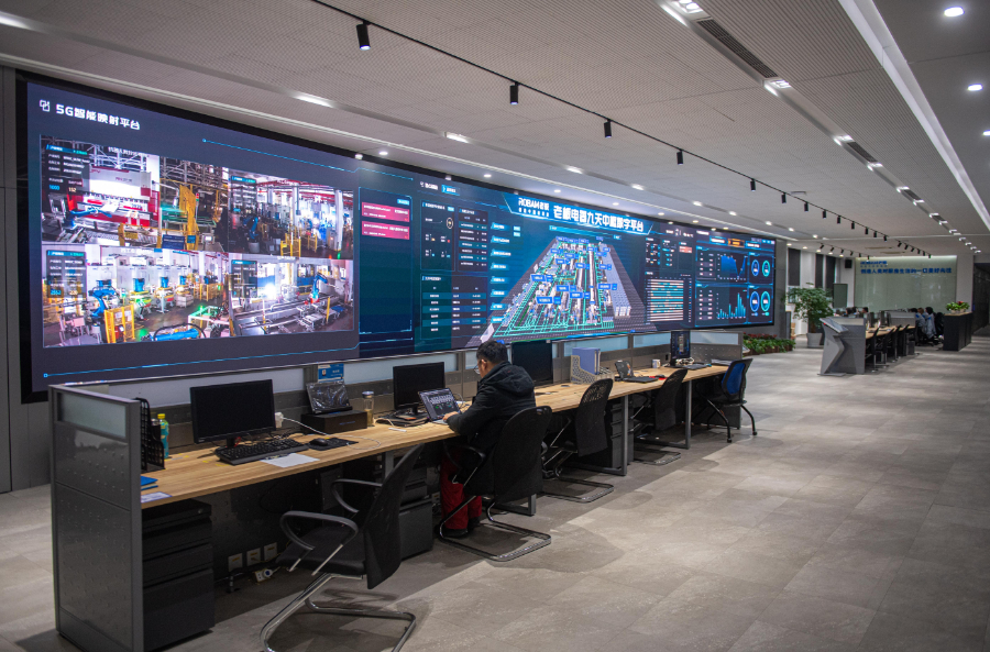 老板电器“未来工厂”内控制无人车间运转的数字平台。新华社记者 江汉 摄