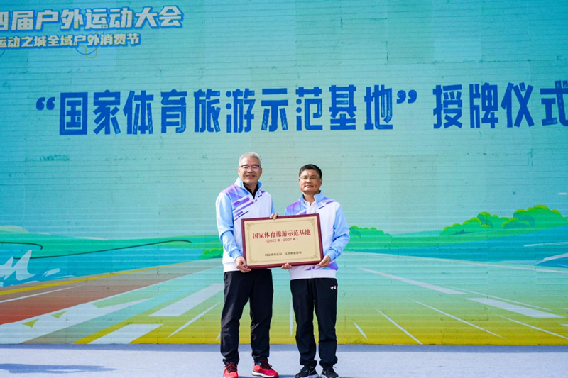 淳安县文化和广电旅游体育局局长方必盛接过“国家体育旅游示范基地”牌匾,淳安亚运龙舟冠军范逸婷宣读千岛湖全域户外宣言,千岛湖户外休闲运动新一轮蝶变由此开启。