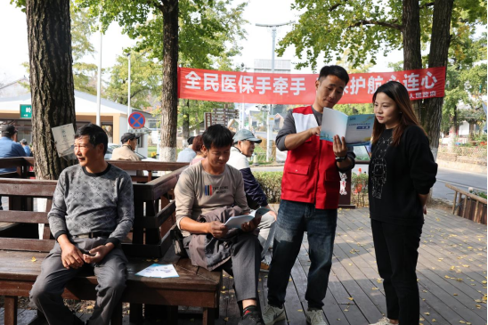 志愿者开展电子医保政策、城乡居民医疗保险政策等宣传。