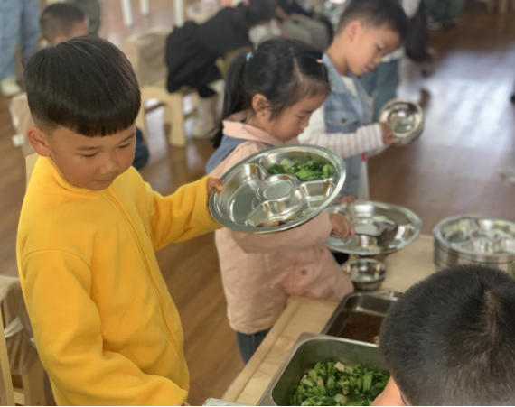 自2014年起,象山县教育局启动幼儿园餐具更换专项行动,更换掉笨重、边缘锋利的金属餐具,改用轻便、安全的轻质餐盘,并同步倡导中班以上的幼儿自我服务,让孩子们自己打饭的自助午餐就是其中一项重要内容。实行自助午餐以来,孩子们抢当“打饭小组长”,打来的饭菜每每“光盘”,也在打饭时学会了照顾同伴。