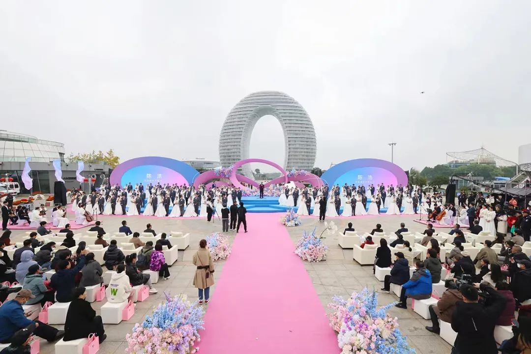 “参加集体婚礼的100对新人,都是各行各业的优秀青年,既有土生土长的湖州人,也有来自天南海北的新湖州人。”湖州市委书记陈浩表示。100对新人进行了爱情宣誓并交换对戒,湖州市主要领导为新人颁发纪念证书。仪式结束后,新人们还参加了游戏互动、游园打卡等活动。