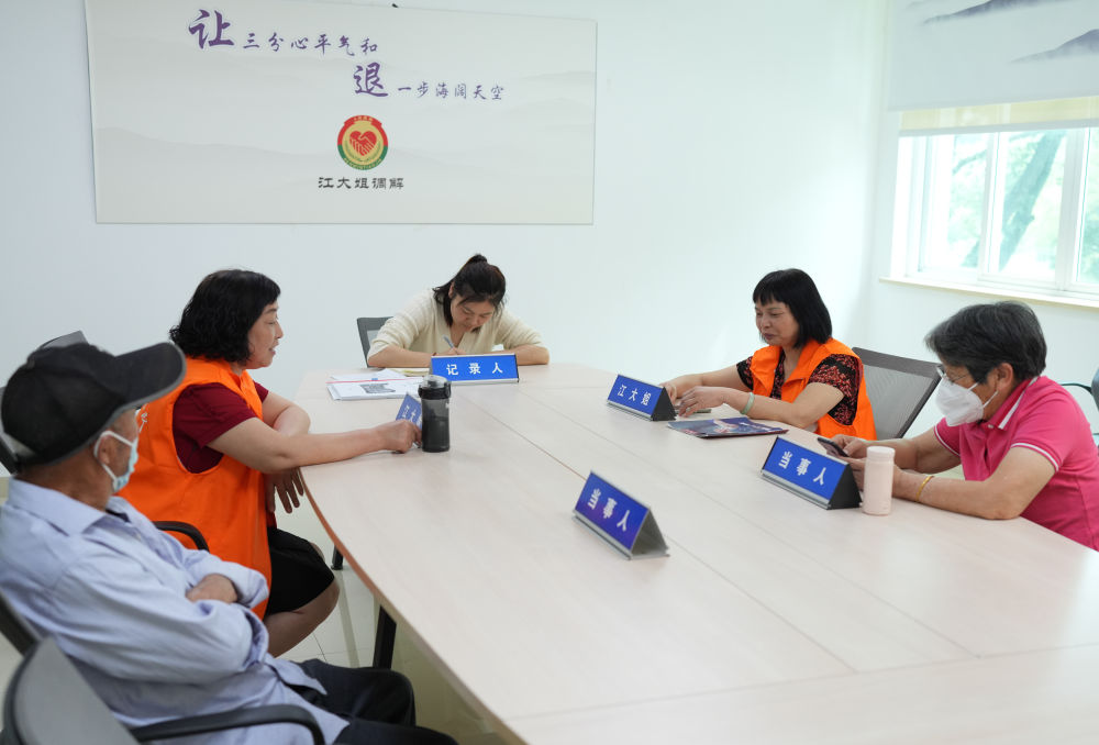 在浙江省诸暨市暨阳街道江新社区“江大姐”调解室,两名调解员在为群众进行调解(2023年5月26日摄)。“江大姐”调解室主要由女性组成,针对社区特点,为周边居民调解邻里、家庭矛盾。新华社记者 翁忻旸 摄