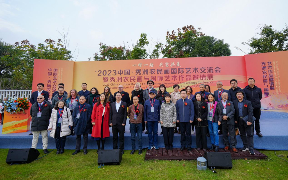 11月16日,2023中国·秀洲农民画国际艺术交流会暨秀洲农民画与国际艺术作品邀请展在浙江省嘉兴市秀洲王店镇镇中村开幕。本次展览共展出中外艺术作品100幅,其中秀洲农民画30幅,国际艺术作品70幅。来自6个国家的20多位国际艺术家相聚在一起,领略秀洲农民画与国际艺术作品的交流碰撞。